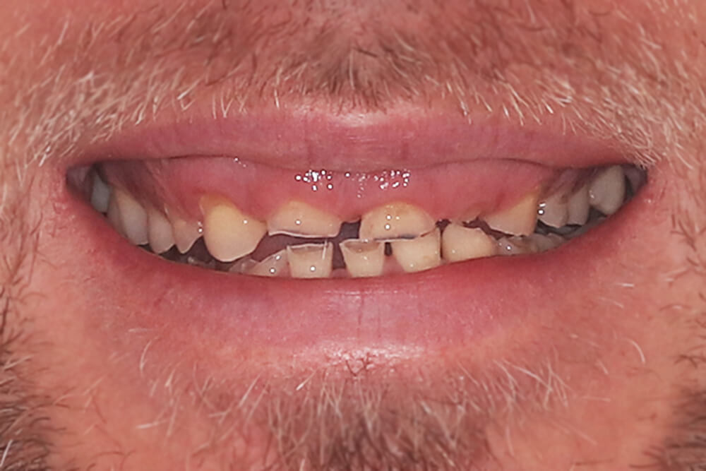 A krónikus fogcsikorgatás a fogakat akár csonkig is koptathatja, miközben mind több és több töredezik le belőlük. Idővel ezek a fogak érzékennyé válnak, meggyengülnek, meglazulnak, de akár el is veszhetnek. Egy ilyen nehéz helyzetben lévő fogazat helyreállítása cirkónium koronákkal komplex kezelést kíván.