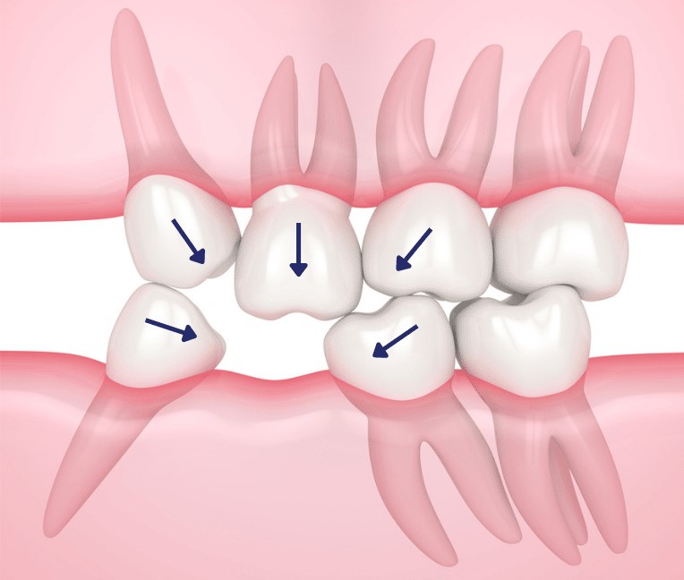 • A szemközti állkapocsban lévő fogak felfelé vagy lefelé is elmozdulhatnak, miközben a már hiányzó rágópárjukat keresik.