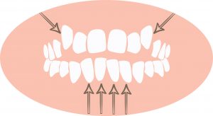 Túlharapás – pókharapás: A felső állcsont és a front fogak előrébb állnak.