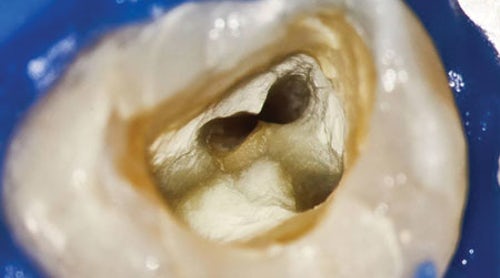 A mikroszkópos fogászati kezelés megkezdése előtt a fogszuvasodástól teljesen meg kell tisztítani a fogat és egy jól záródó, kompozit töméssel ellátni.