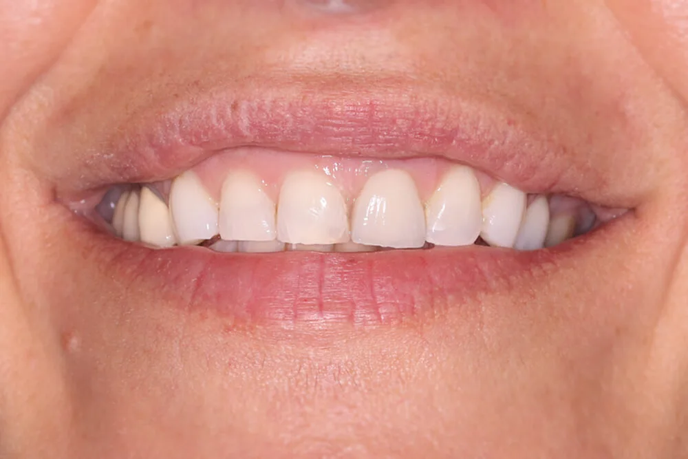 A hölgy porcelán héjat szeretett volna a fogára, ám gyökérkezelésen átesett fogat héjjal ellátni nem szabad. Gyökérkezelés során a fogat ellátó, tápláló idegeket távolítjuk el, ezért idővel, a kezelt fog sérülékenyebbé, törékenyebbé válik egy vitális – élő foghoz viszonyítva.