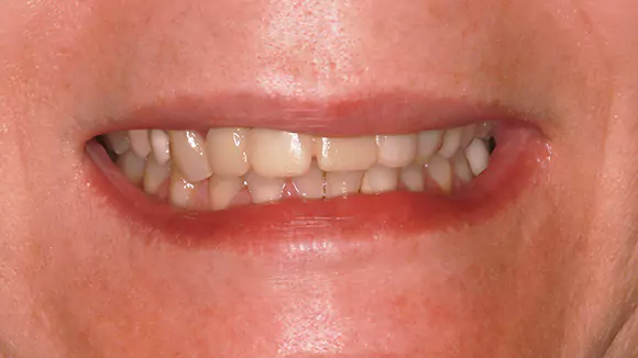 A hölgy az állapotfelmérésre egy olyan mozgó fog miatt érkezett, ami történetesen a bal felső kismetsző fog helyére beültetett fogimplantátum volt. Az implantátum márkájára nem emlékezett, ráadásul a rendelő, ahol a beültetést végezték és ahol a fogpótlást kapta, azóta már bezárt.