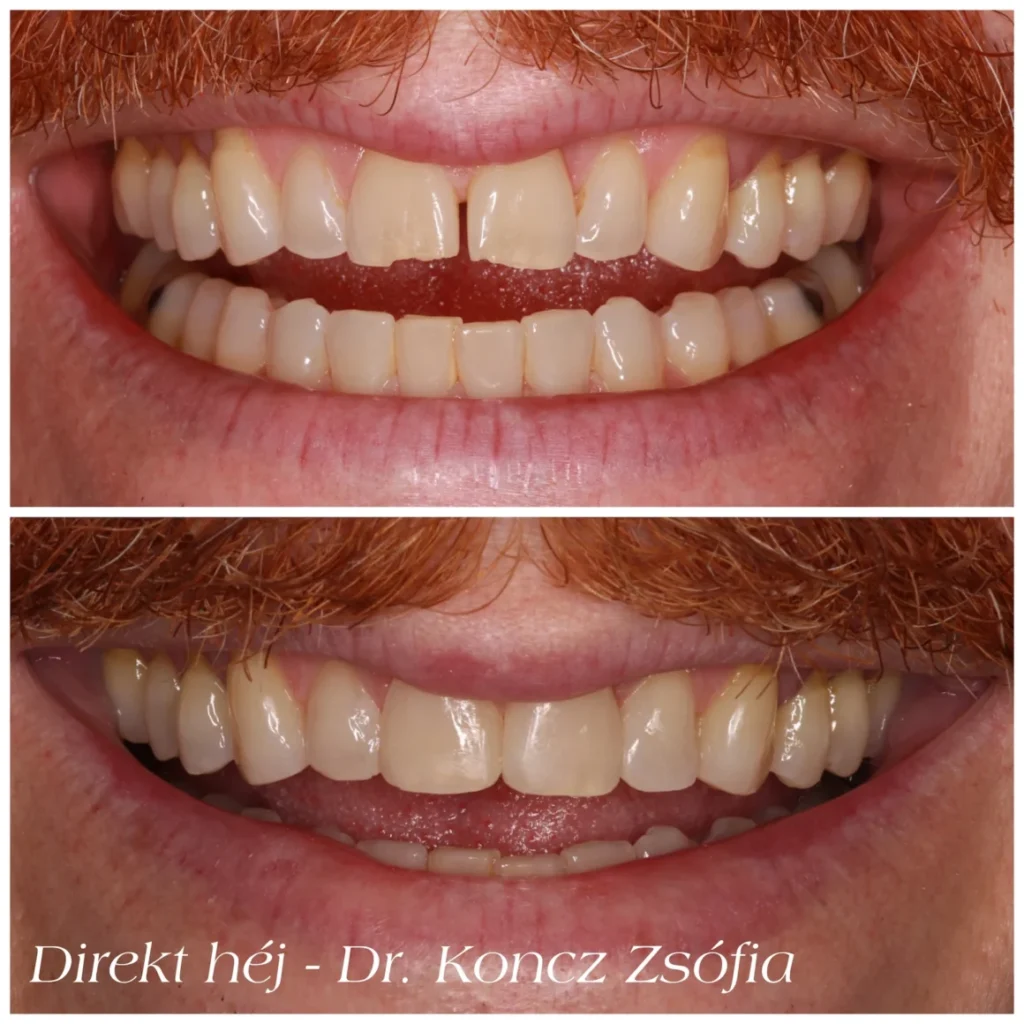 Fogak közötti rés megszüntetése – Direkt héj előtte utána