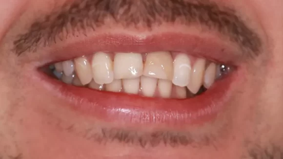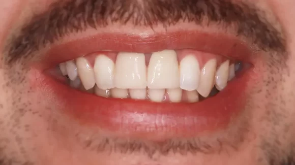 Valószínűleg a kialakult bizalom és a fájdalommentes kezelés hatására menet közben a mosolyzóna esztétikáján is módosítani kívánt, így a két nagymetsző fogára is cirkon koronákat terveztünk.