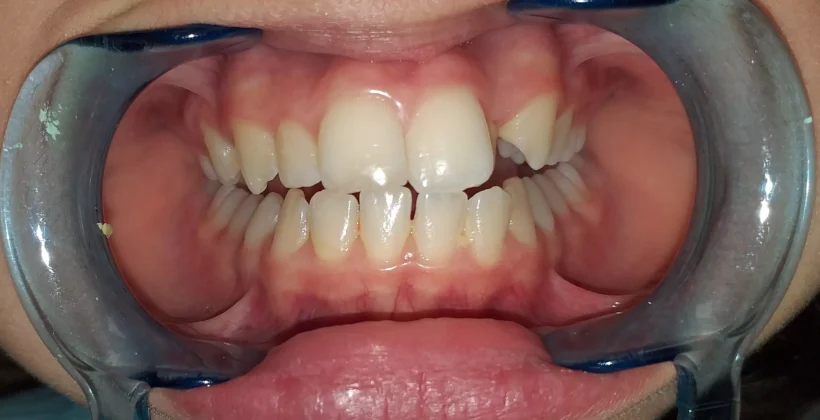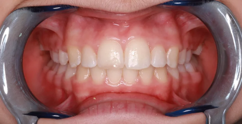 Fiatal, 14 éves páciensemet a felső fogsorának látványos esztétikai problémája zavarta. A bal oldali kismetsző foga a fogváltás után, palatinálisan helyezkedett el, vagyis nem a többi foggal egy vonalban, hanem beljebb a szájpadlás irányába bújt elő, így takarásba került, és olyan hatást keltett, mintha hiányozna egy frontfoga.