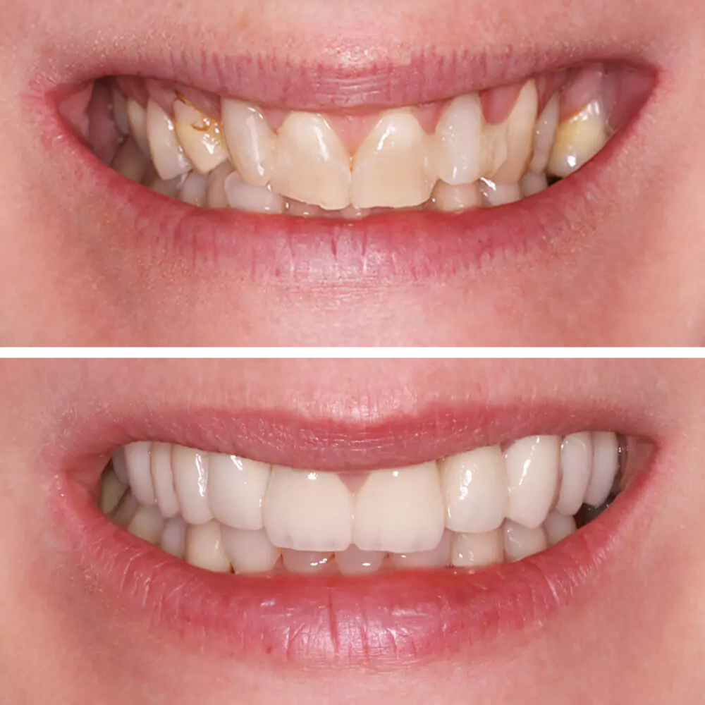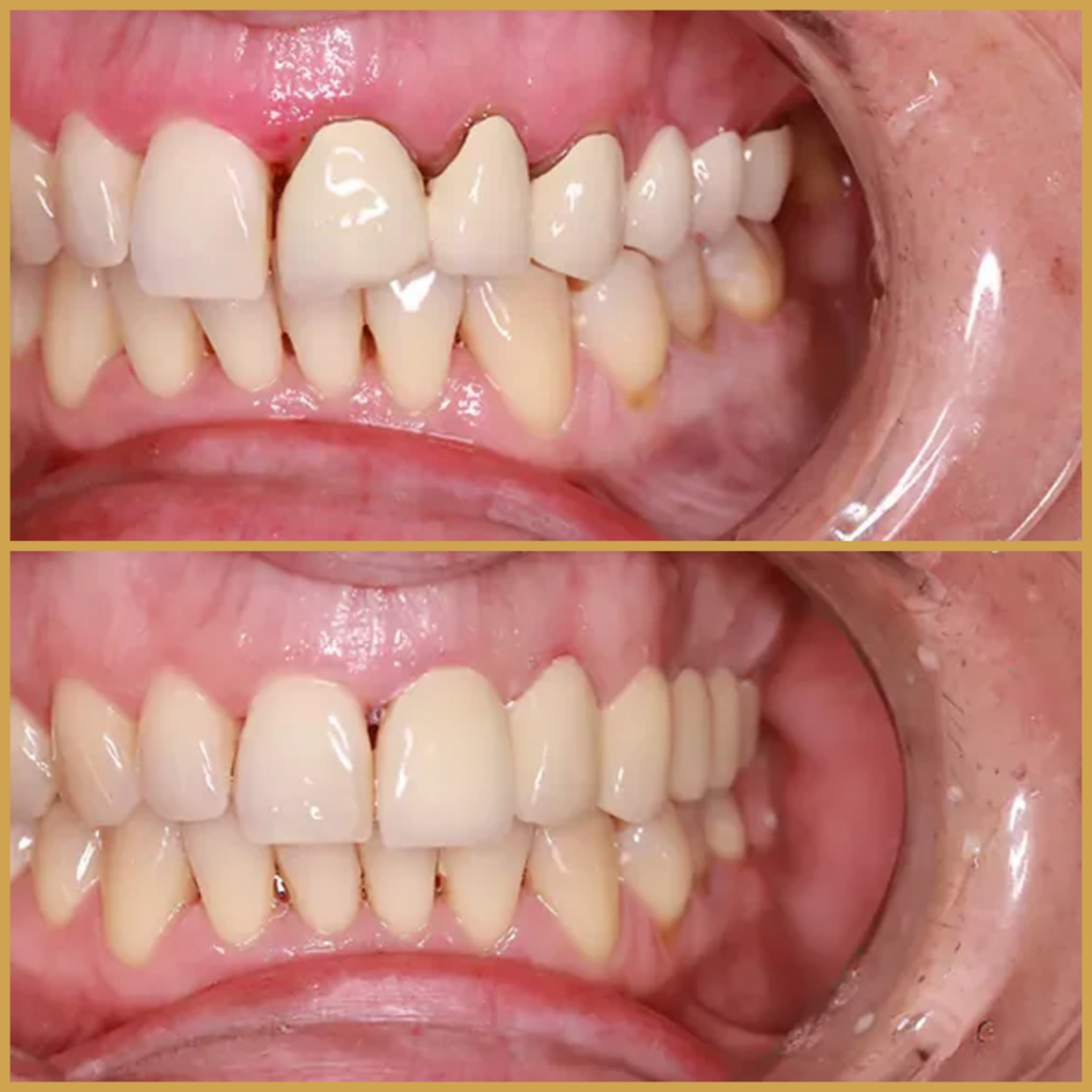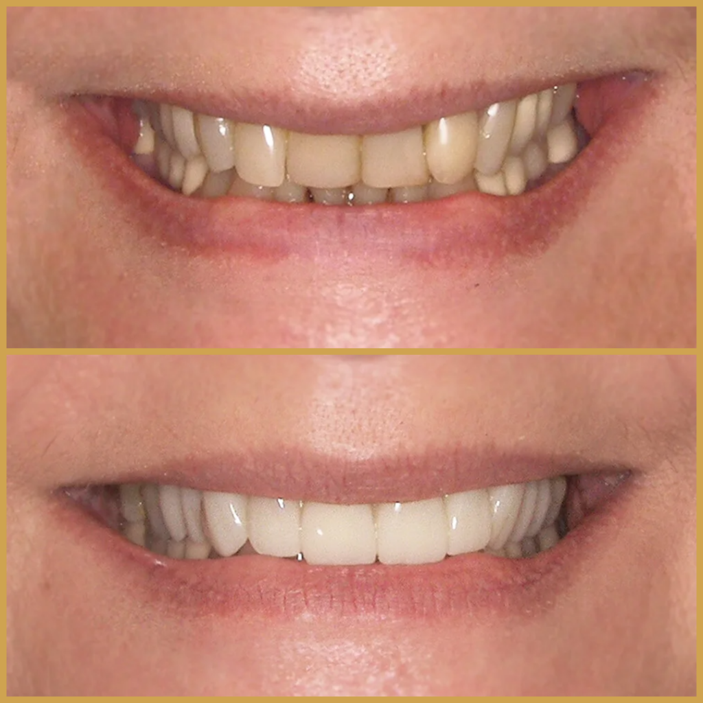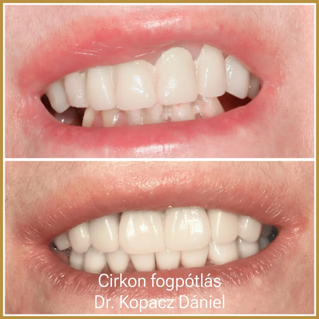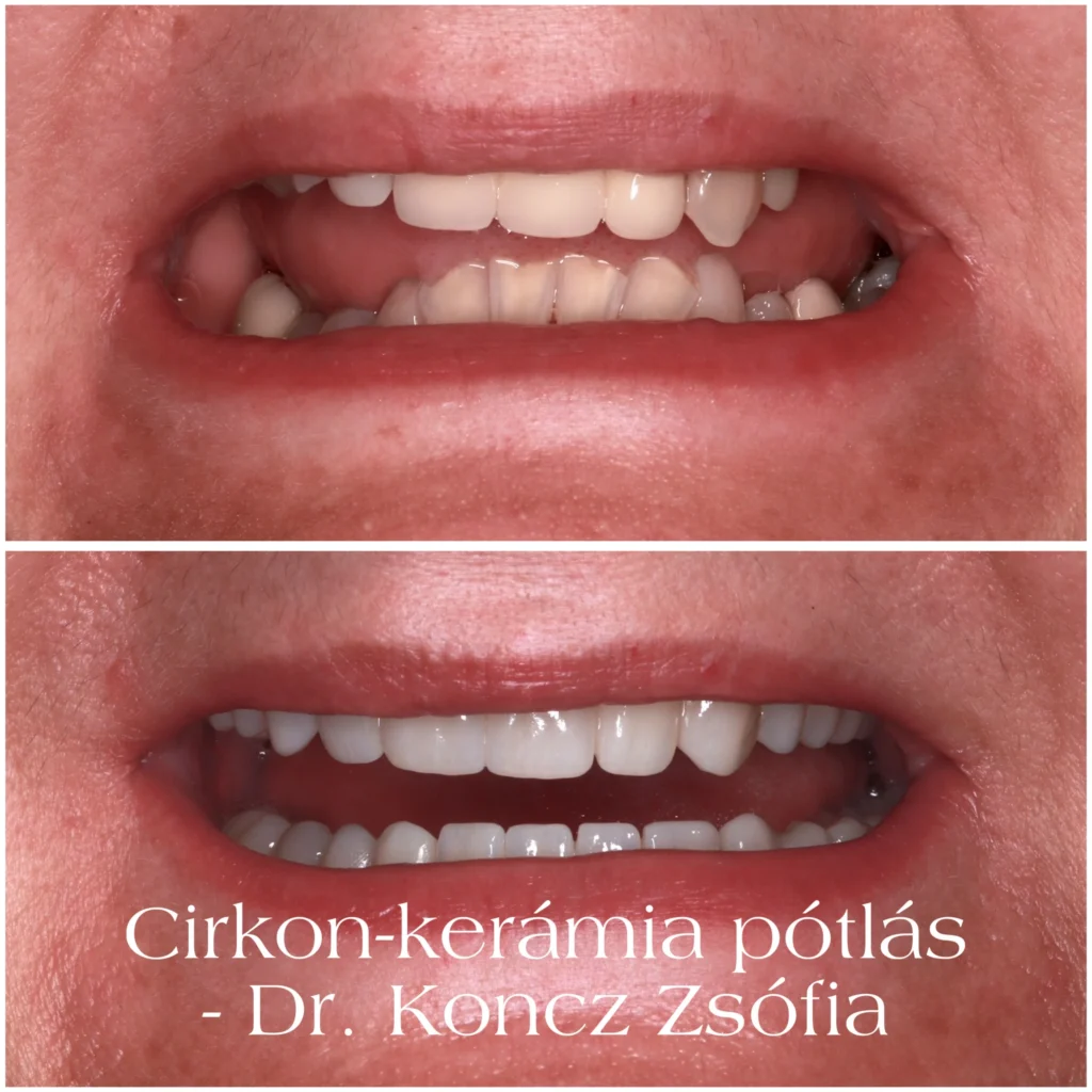 Természetesen szép mosolyt és egészséges fogakat szeretett volna, mert sem a fogak formájával, sem a fogak színével, sem a foghiányt takaró pótlásával nem volt elégedett.