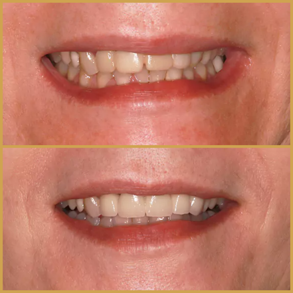 61 éves hölgy páciensem az állapotfelmérés alkalmával esztétikai problémákról számolt be. Leginkább a mosolya fénye kopott meg az évek alatt, elégedetlen volt a fogak megjelenésével, mosolyrendezést szeretett volna.