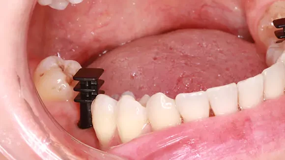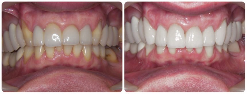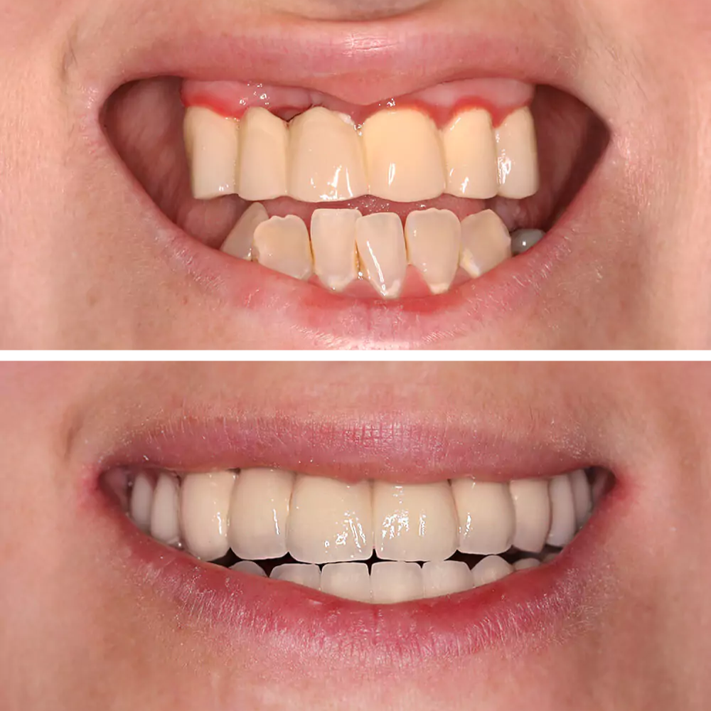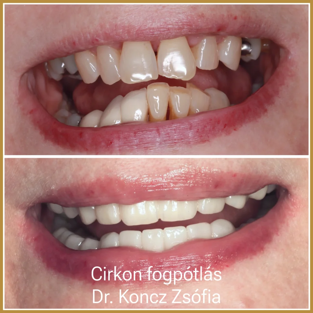 33 éves hölgy páciensemet tinédzser korában kalcium felszívódási autoimmun zavarral diagnosztizálták, így fogai gyorsan és könnyen romlottak el. Jellegzetes bulldog harapása mellett, az alsó állcsonton elöl csupán 7 foga, felül 4 foga maradt.