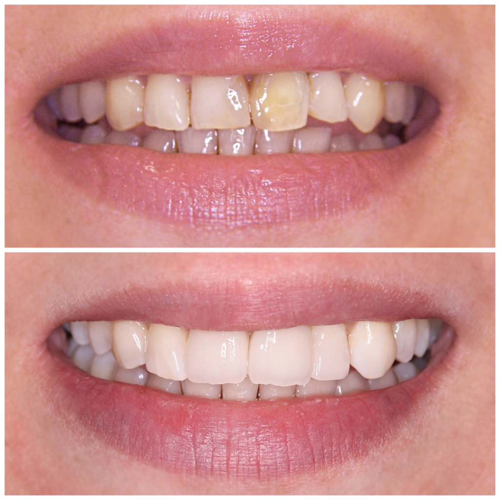 A hölgy egy 1,5 éves komplex fogszabályzó kezelésen volt túl, mire hozzám érkezett. Tőlem az első két frontfogának szín- és formabeli korrekcióját kérte.